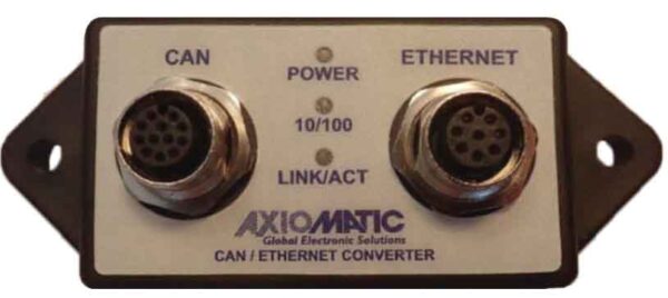 The Protocol Converter comes pre-programmed with standard protocol conversion logic for bidirectional data exchange between Ethernet (proprietary TCP communications), an RS-422 bus, two RS-232 buses, and a CAN network (SAE J1939). Data is forwarded “as-is” between the different serial ports. Also, CAN / Ethernet data is forwarded directly to serial interfaces with the configuration allowing the user to specify the CAN message ID (or TCP port) to listen for data to be forwarded. The module is IP67 rated for rugged environments.